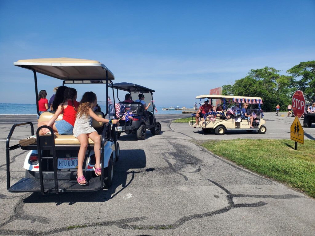 The morning of, we hopped in golf carts and joined the parade downtown.