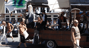 They were dressed as pirates, and threw chocolate and plastic coins.