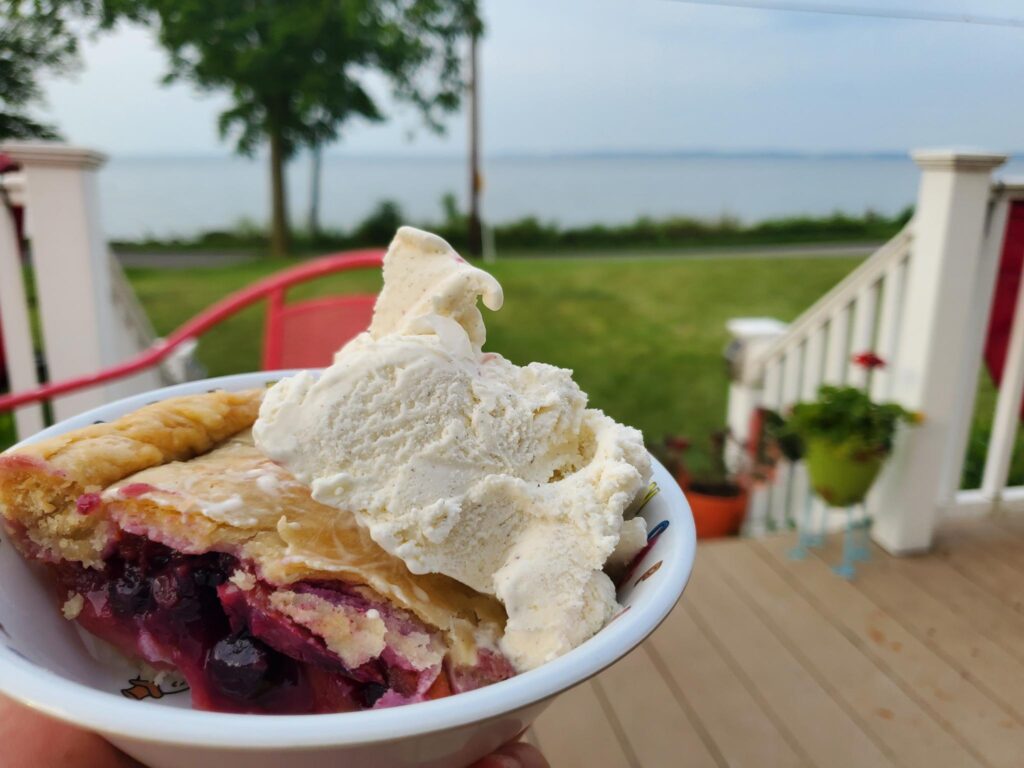 Also unrelated but worth sharing, one morning we had pie and ice cream for breakfast in front of the lake.