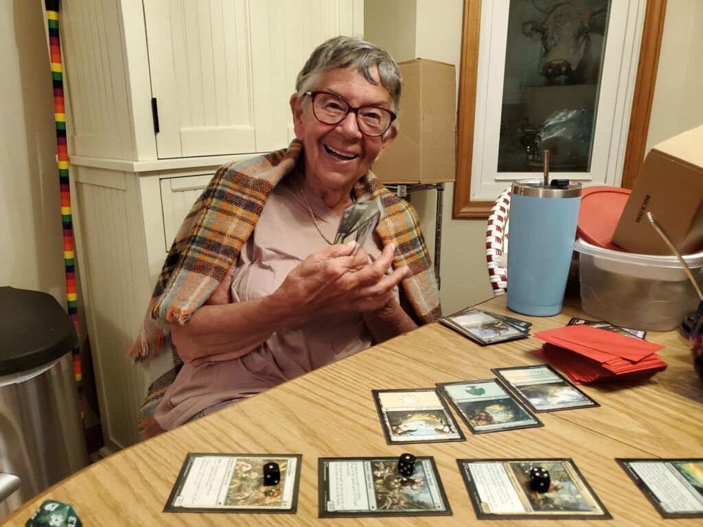 Molly is a very good bridge player who loves to learn new things, so I introduced her to Magic the Gathering this month.