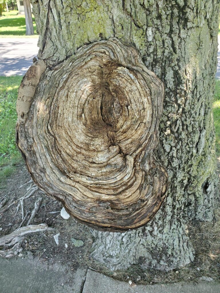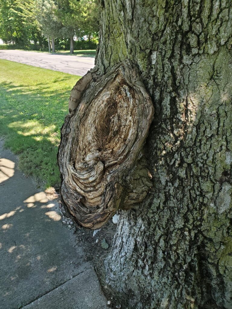 And, in keeping with the general opening of these posts so as not to disappoint you all with a lack of funny trees, across from him was this one with a strange knot that looked kinda like a massive mushroom: