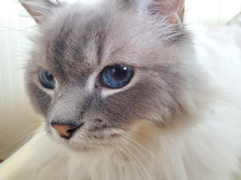 One day I got a picture of her kitty Shasta, who has remarkably blue eyes: