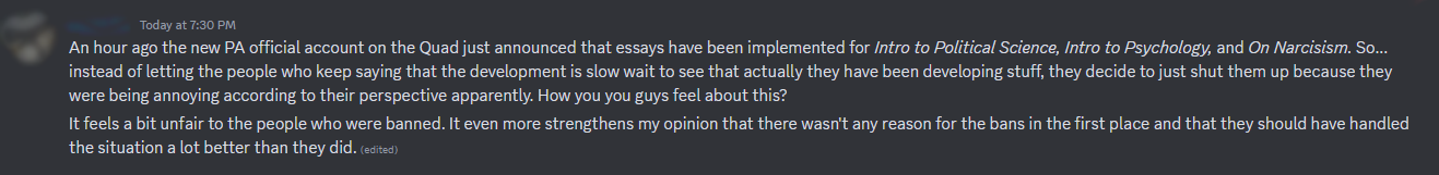 I received emails and Discord DMs from a number of students expressing their disbelief.