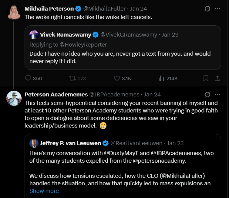 Yet Another Student Pointing Out Hypocrisy in Peterson Academy’s Choice to Deplatform Students without Explanation