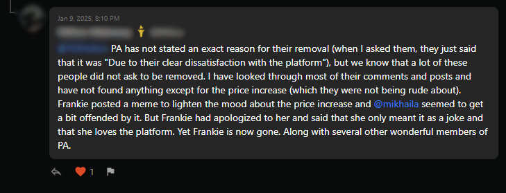 So it’s worth noting that the majority of us who were removed used our full names and were not anonymous.